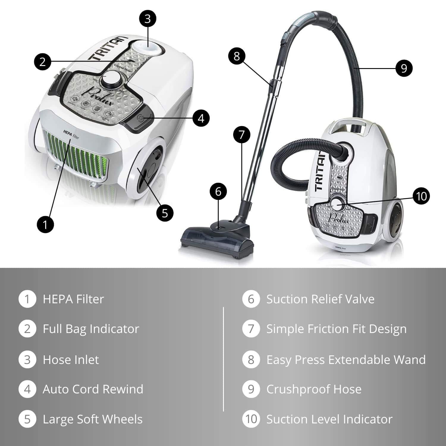 - PROLUX TRITAN - Lightweight canister vacuum with incredible suction. Prolux challenges you to find another vacuum at this price that compares!